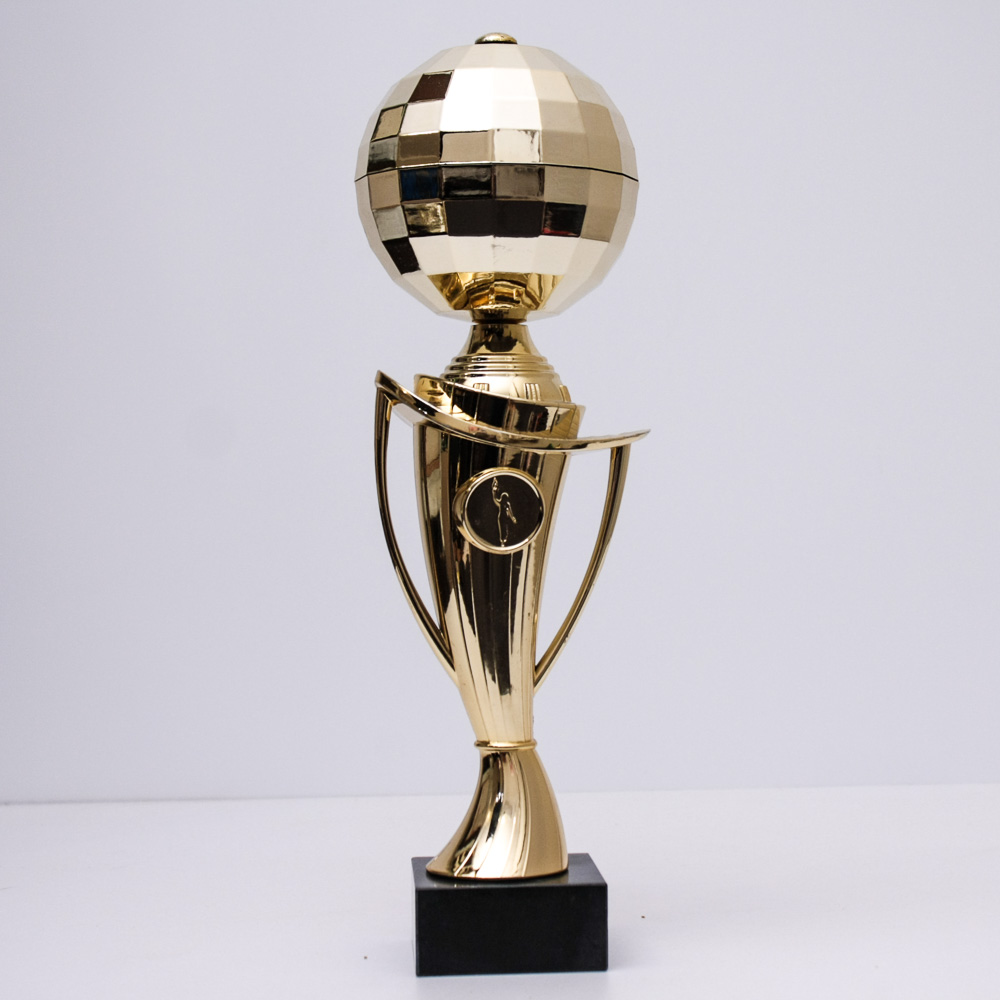 Это высококачественный наградной кубок, идеально подходит для любого вида спортивного мероприятия или другого торжества. Высота кубка составляет 36 см, что делает его выдающимся символом победы и достижений.
