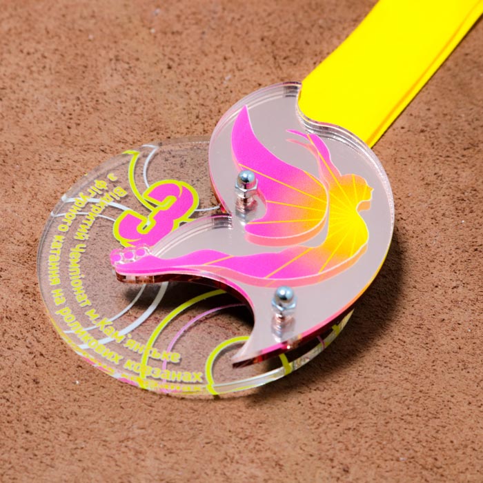 Медаль выполнена из качественного акрила, с нанесением УФ печати.