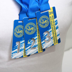 Индивидуальные медали изготовлены из металла, акрила, дерева с оригинальной подписью.