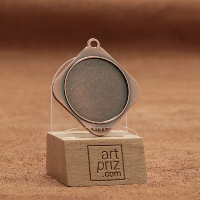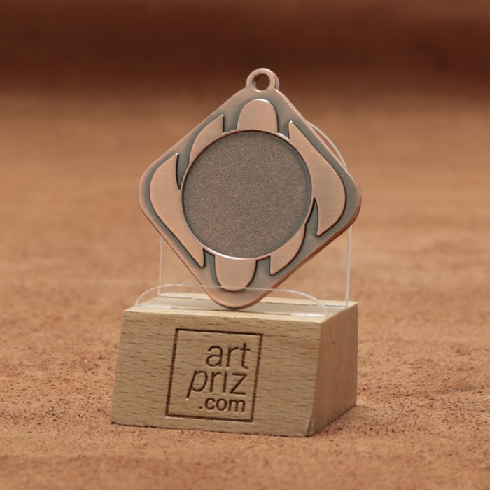 Эта медаль имеет диаметр 45 мм и форму абстрактного дизайна, который придает ей стильный вид. Изготовленная из качественного металла бронзового цвета, она придаст благородства любому событию. На передней стороне медали есть место под жетон диаметром 25 мм, который можно использовать для личного наполнения, в зависимости от идеи обладателя медали.