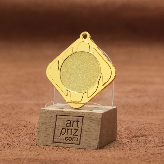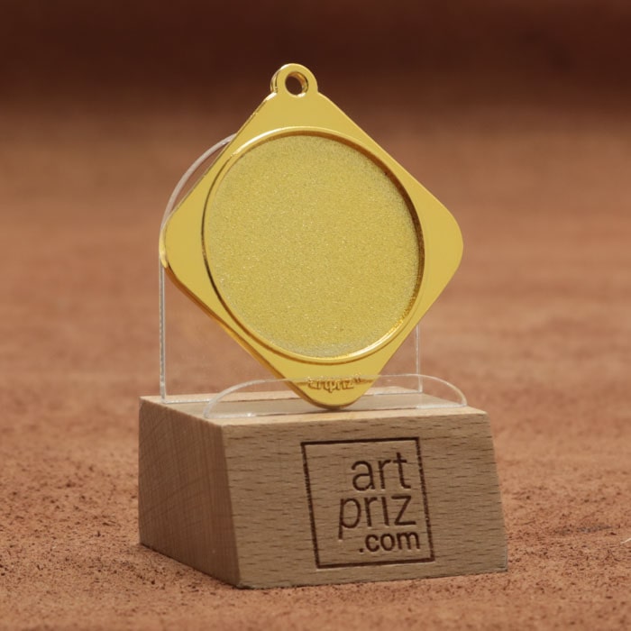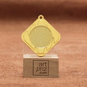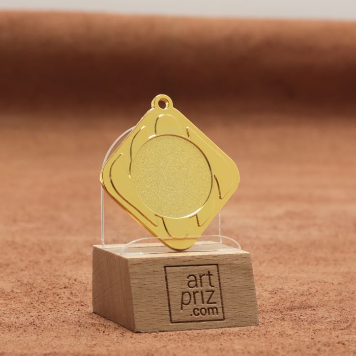 Эта медаль имеет диаметр 45 мм и форму абстрактного дизайна, который придает ей стильный вид. Изготовленная из качественного металла золотого цвета, она придаст благородства любому событию. На передней стороне медали есть место под жетон диаметром 25 мм, который можно использовать для личного наполнения, в зависимости от идеи обладателя медали.