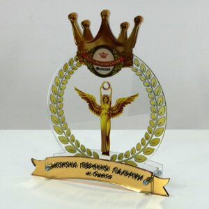 Награда выполнена из акрила плюс нанесение УФ печати.