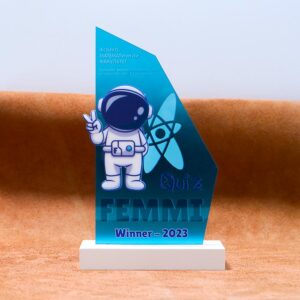 Награда выполнена из акрила с деревом плюс нанесение УФ печати.