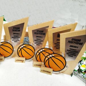 Приз по баскетболу из дерева и акрила а-Лига 1 место высота 20см