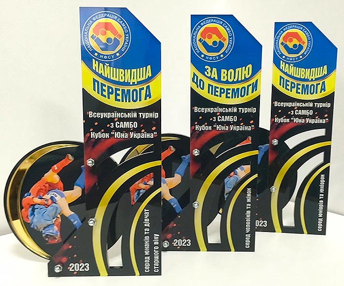 Награда выполнена из акрила плюс нанесение УФ печати.